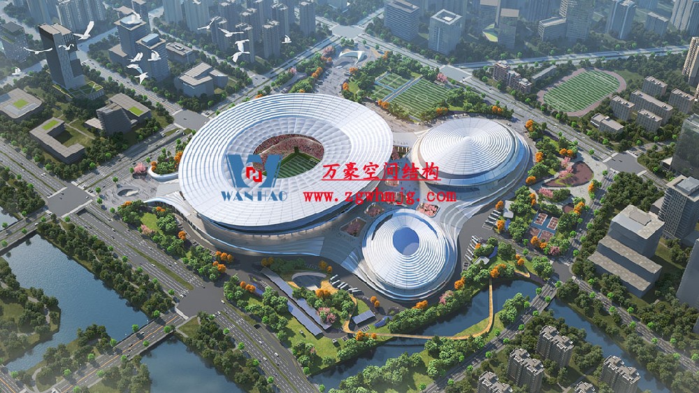 項目概述 - 杭州余杭國際體育中心,位于浙江省杭州市余杭區杭州未來科技城.該項目二次鋼構用鋼量9000噸,PTFE膜展開面積40000平方米,是長三角最大覆殼式膜結構體育建筑。...